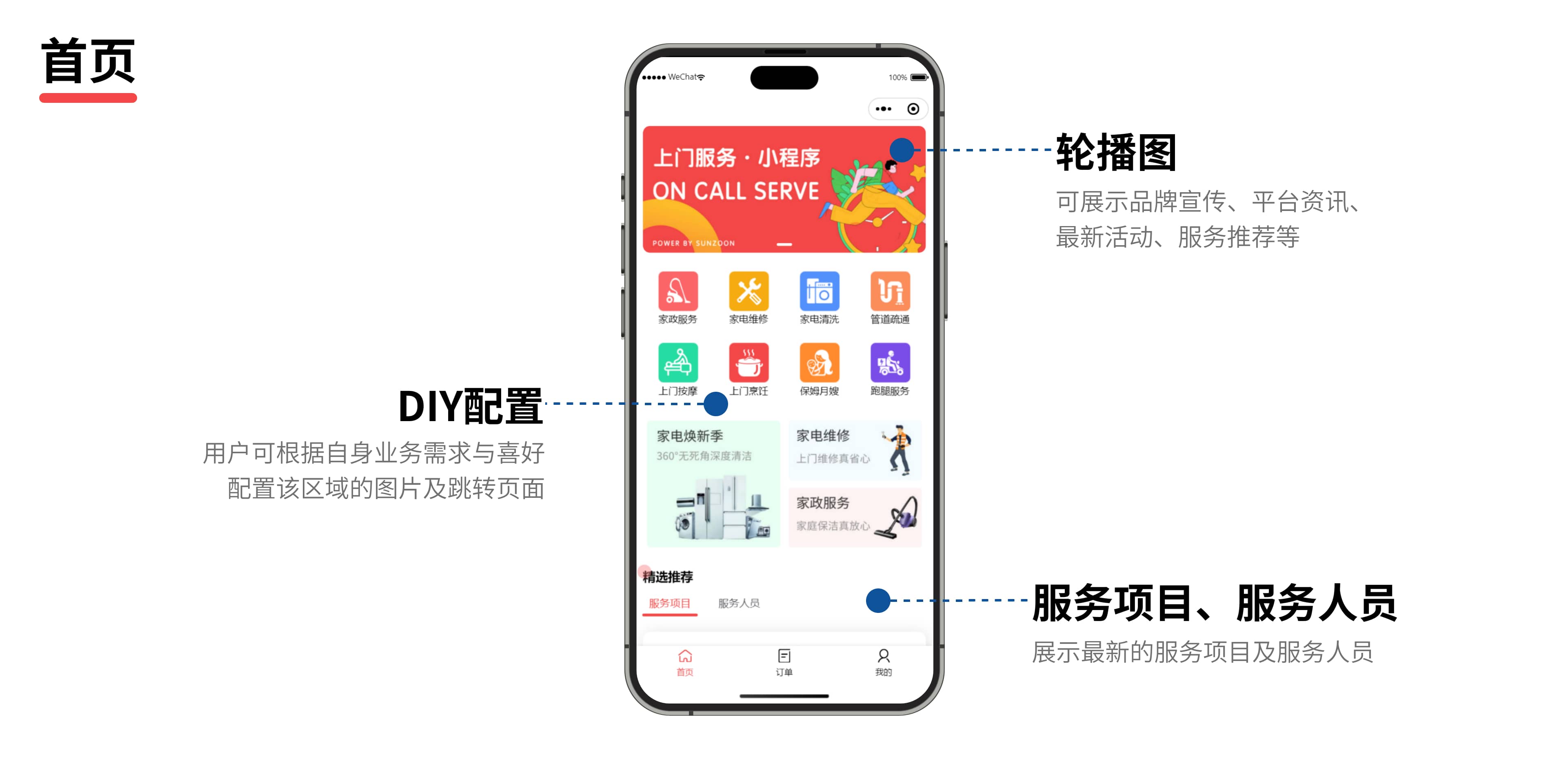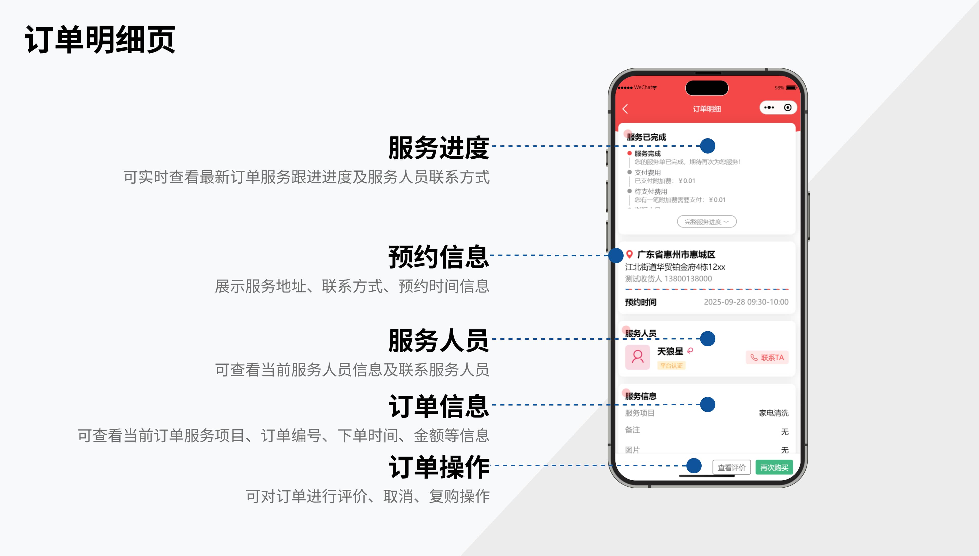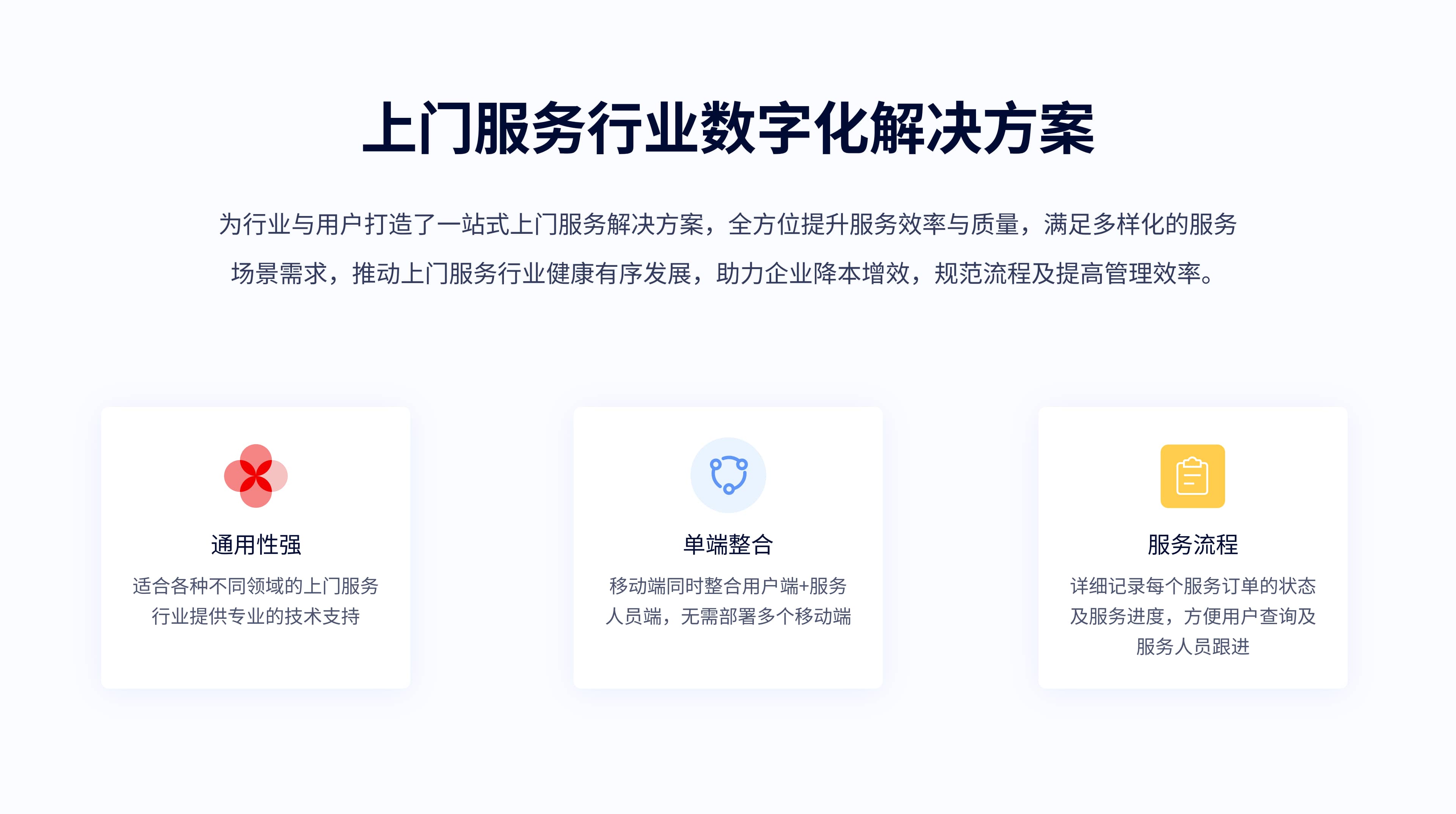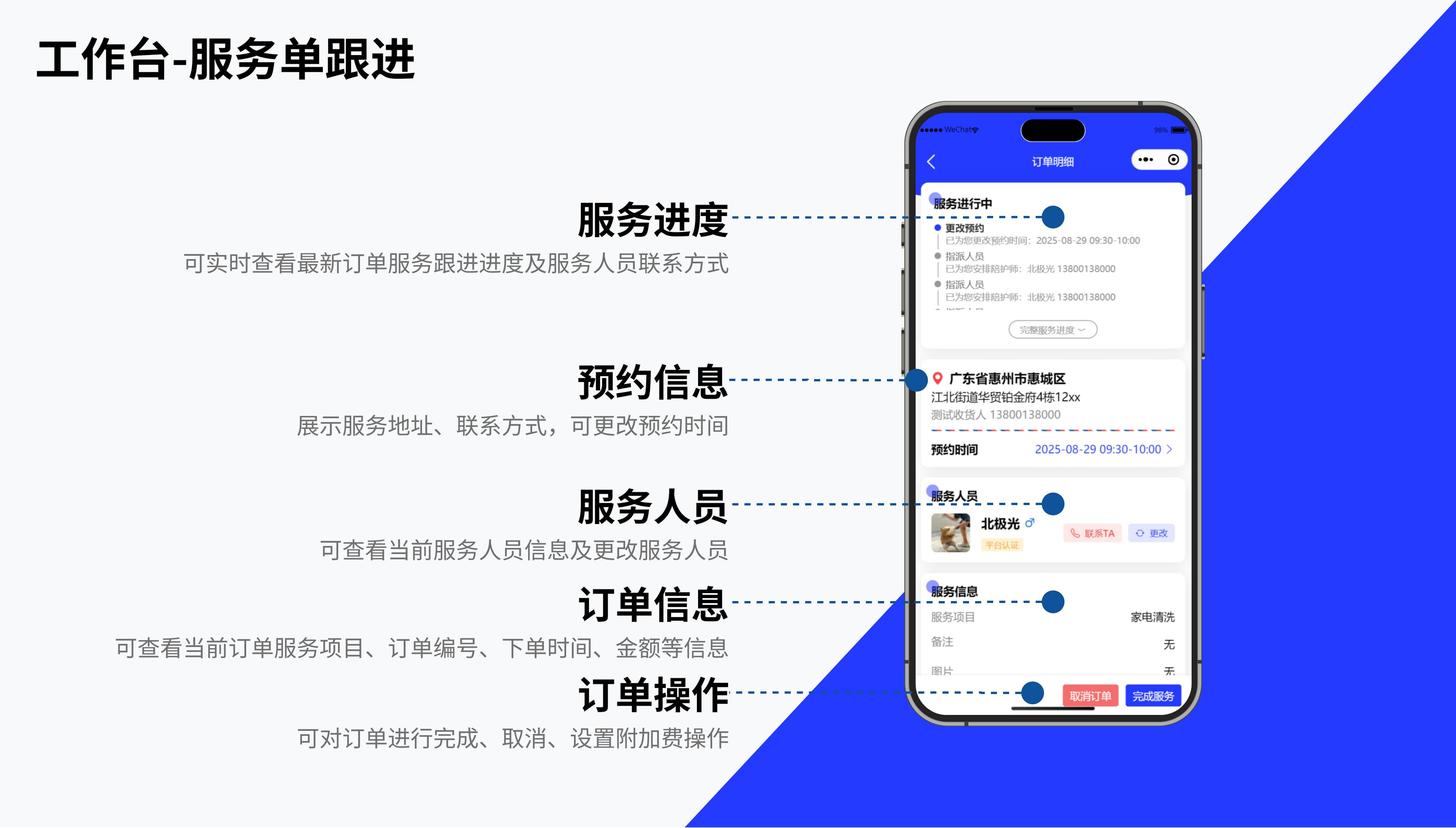 為行業與用戶打造了一站式上門服務解決方案,全方位提升服務效率與質量,滿足多樣化的服務場景需求,推動上門服務行業健康有序發展,助力企業降本增效,規范流程及提高管理效率。